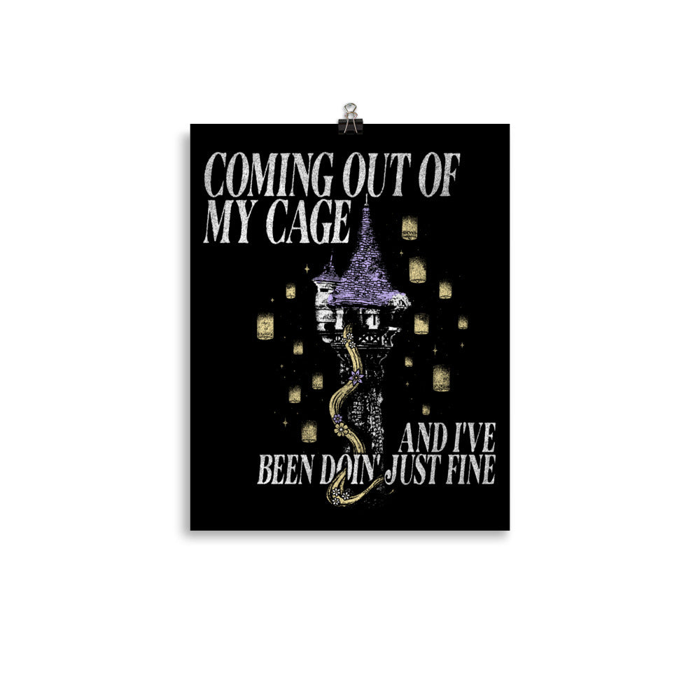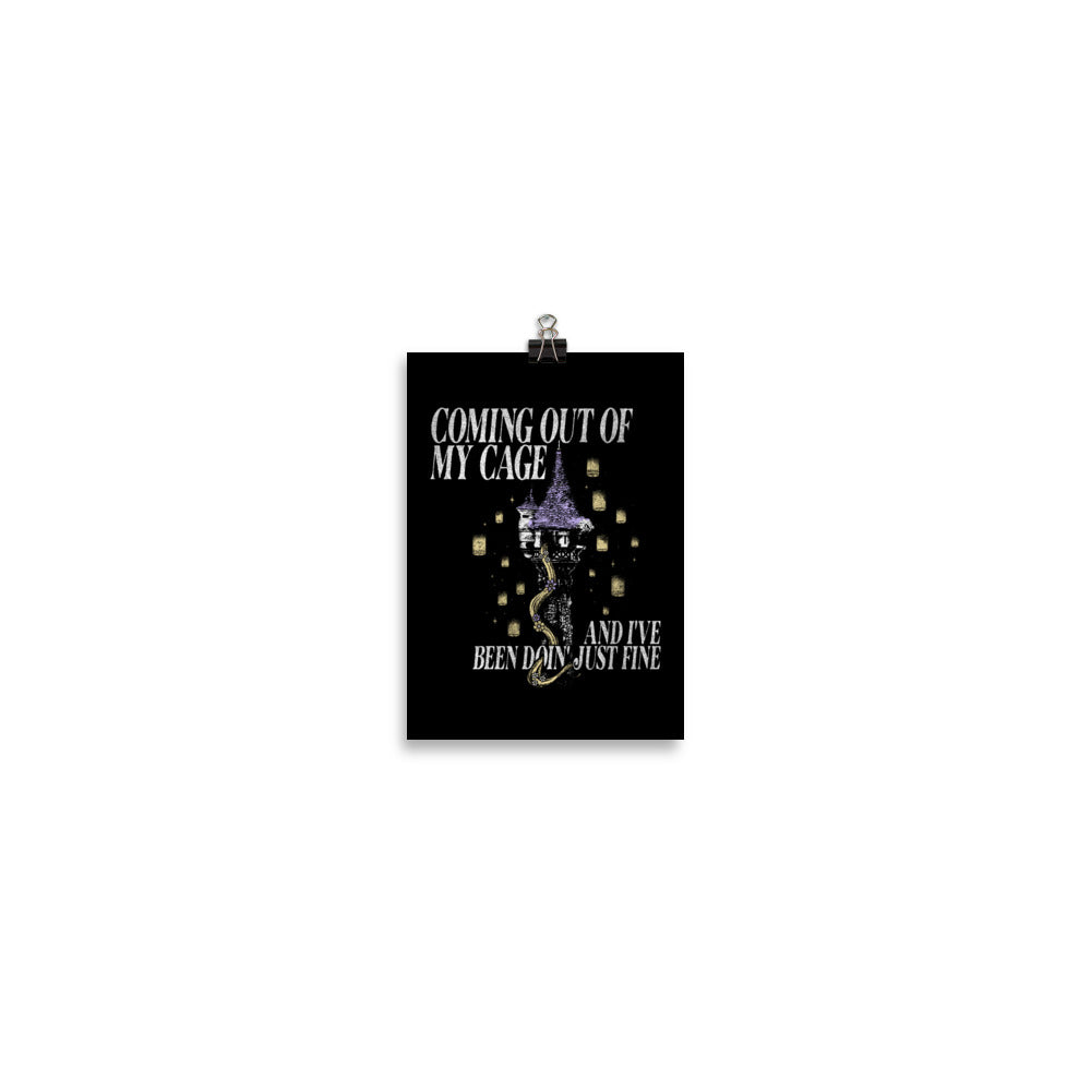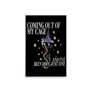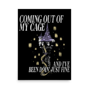 Let your hair down, but keep it dramatic! Our Coming Out of My Cage Print is where iconic indie heartbreak meets Blondie's tower-shaking optimism. Made for daydreamers who belt out emotional lyrics into a hairbrush and know how to wield a frying pan, this decor is your ticket out of the tower and into the spotlight. It's time to come out of your cage – and feel just fine.