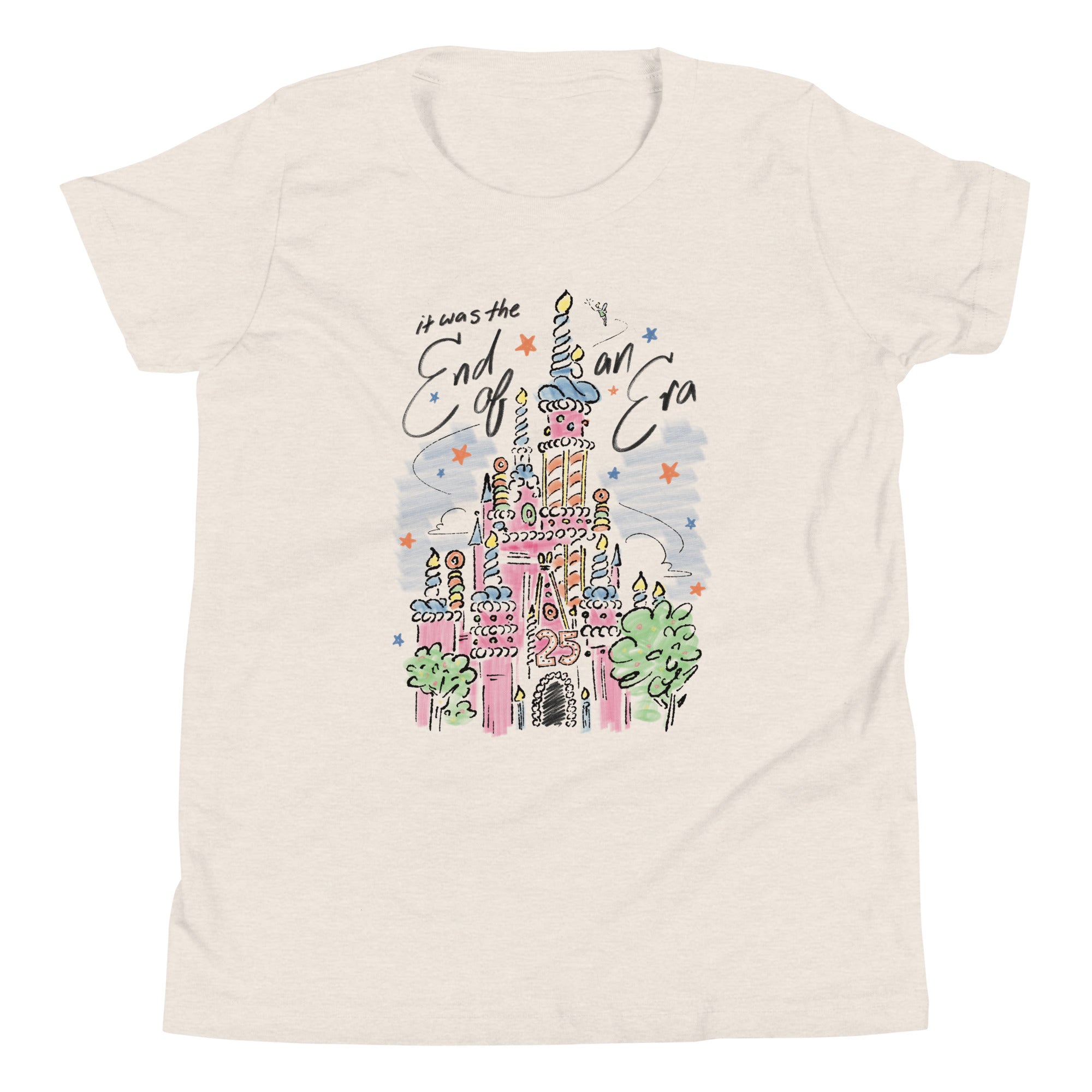Blending nostalgic celebration vibes, our End Of An Era Youth Tee honors the best era of our iconic castle - with a little sparkle, a little frosting, and a whole lot of iconic-core energy!