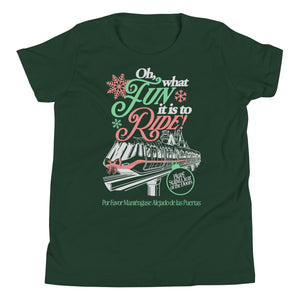 Oh what fun is our newest holiday variant of our Please Stand Clear Youth Tee. The perfect tee for every trip around the highway in the sky during the holiday season!