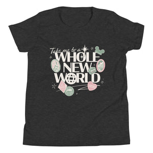 Say hello to instant wanderlust ✨ OurTake Me To A Whole New World Crop Youth Tee brings vintage park vibes and dreamy destinations together—perfect for daydreamers, park hoppers, and anyone ready for their next adventure!