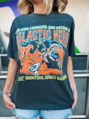 Calling all Space Rangers! It's time to defeat Emperor Zurg once and for all and become the ultimate Galactic Hero! This Galactic Hero Tee is made for every ranger who knows all about that 999,999 high score. Grab this tee and get ready for the battle of your life!