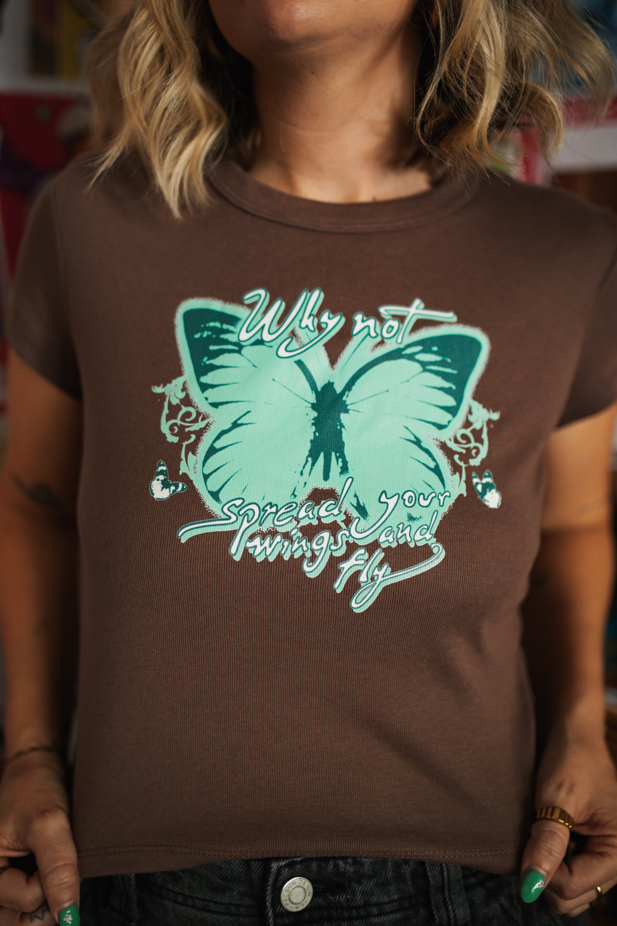 Our Why Not Baby Tee is your sign to take a crazy chance and do something fearless! It’s time to spread your wings and fly.