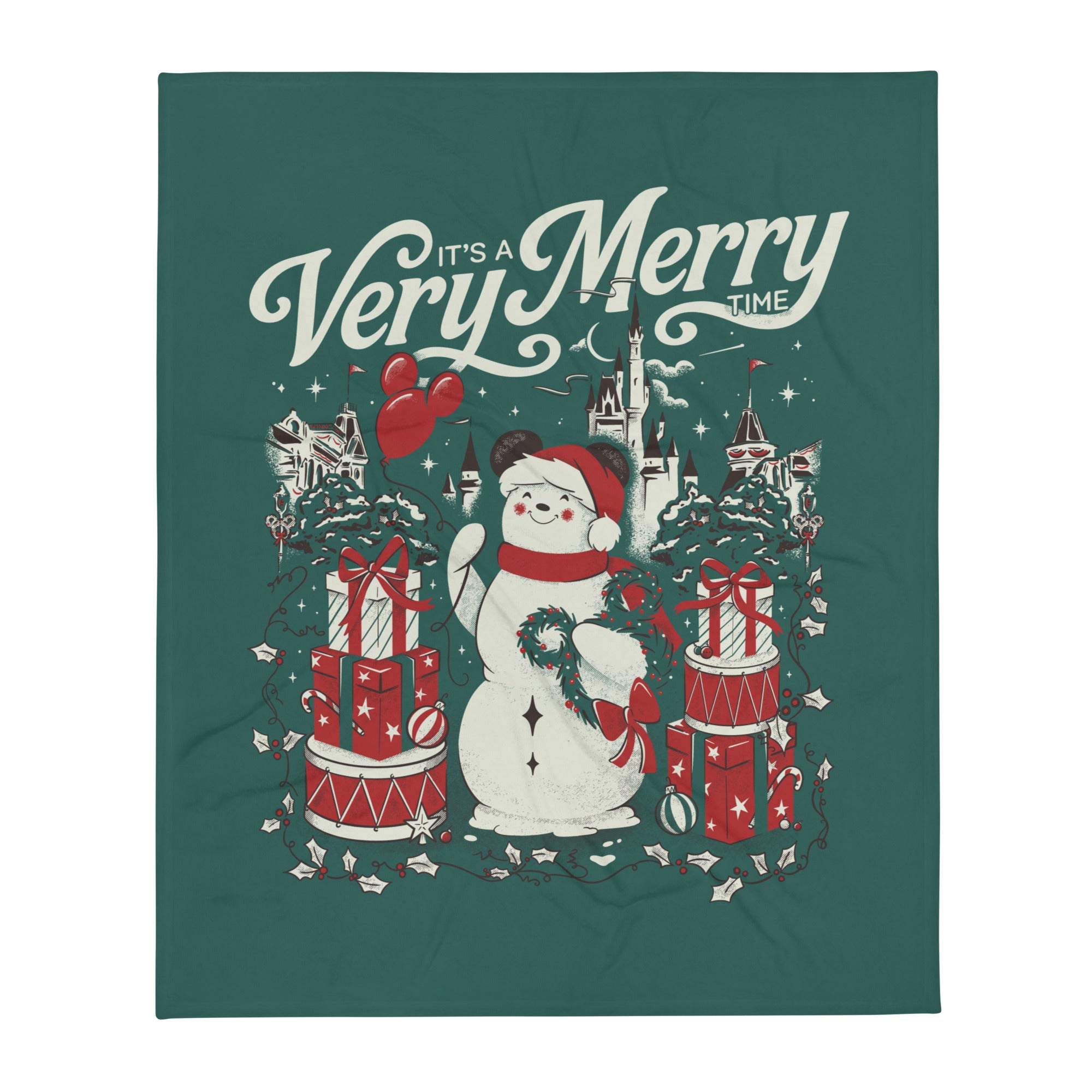 A snowy castle backdrop adds an extra touch of wonder, making this the perfect bLanier to add to your decor to channel your favorite park days, or cozy nights by the fire. Our It’s A Very Merry Time Blanket is perfect to bring holiday cheer!