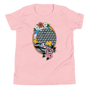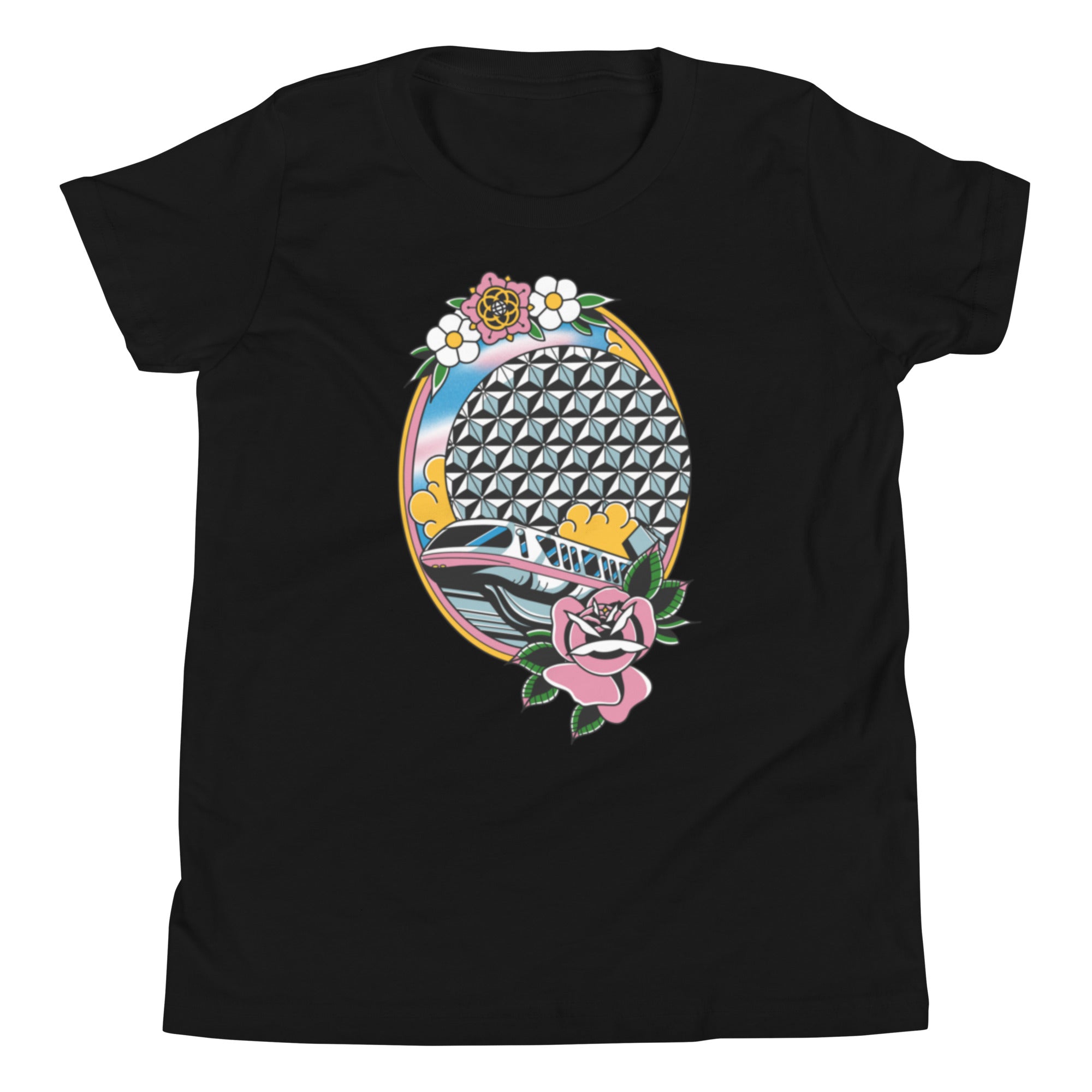 We are bringing you our Monorail-cot Tattoo Youth Tee! Featuring the prettiest girl in school and the best form of transportation on property in a classic tattoo style!