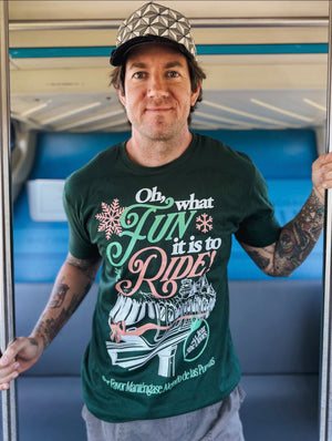 Oh what fun is our newest holiday variant of our Please Stand Clear Tee. The perfect tee for every trip around the highway in the sky during the holiday season!