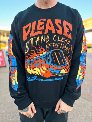 Please stand clear of the doors while you wear our newest Heavy Metal variant of our Please Stand Clear Tee. The perfect long sleeve tee for every trip around the highway in the sky.